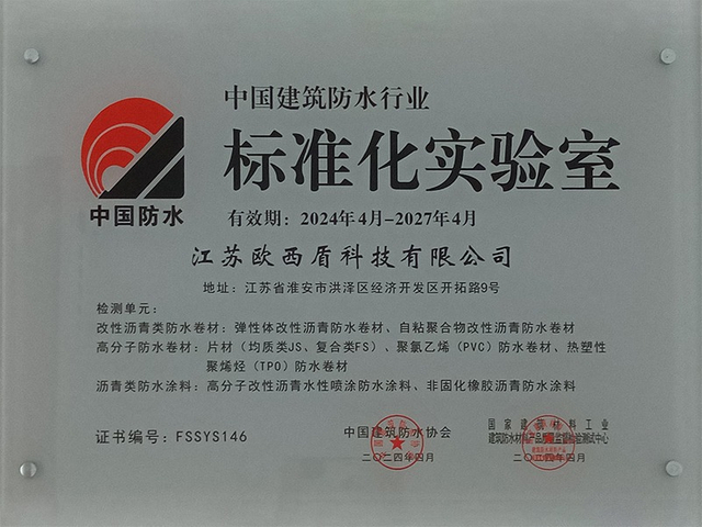 Стандартизированная сертификация лаборатории Китайской ассоциации гидроизоляции зданий и Центра контроля и тестирования качества строительных гидроизоляционных материалов и продукции.